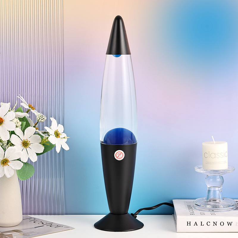 16 इन्च कालो छायाको नीलो लाभा बत्ती हाईट पावर प्लग इन हो। बैजनी बैजनी एल्युमिनियम खोल, बैजनी मैन, जब प्रज्वलित हुन्छ, शुद्ध बैजनी मैन बत्ती।
