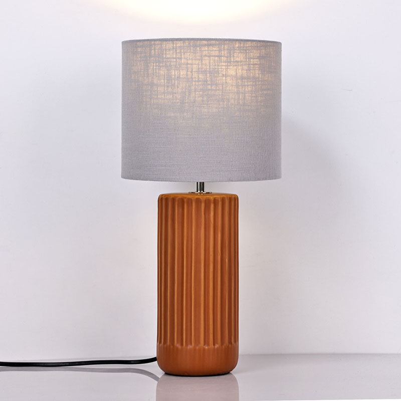 कपडाको छायासहितको टेबल ल्याम्प, कपडाको छायासहितको ब्राउन गोलाकार सिरेमिक बत्ती, E27/E14 ऊर्जा बचत गर्ने प्राकृतिक प्रकाश, घरहरू वा काठको भित्री सजावटका लागि प्रयोग गरिन्छ।