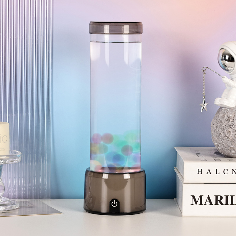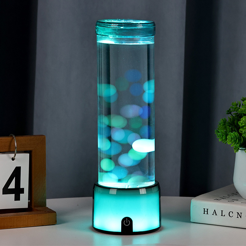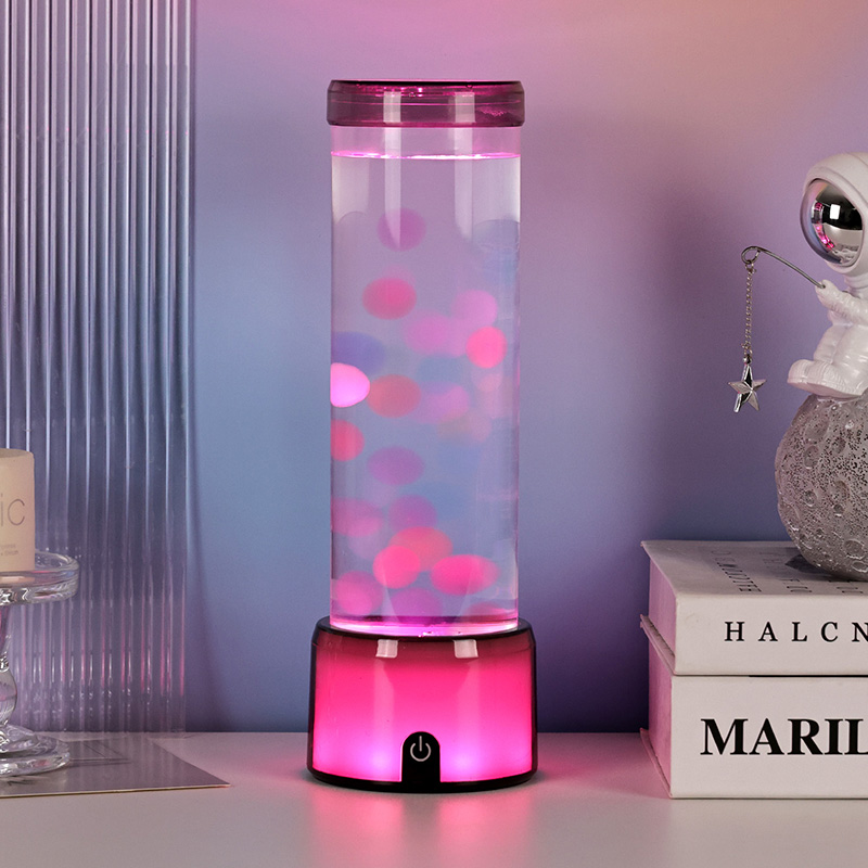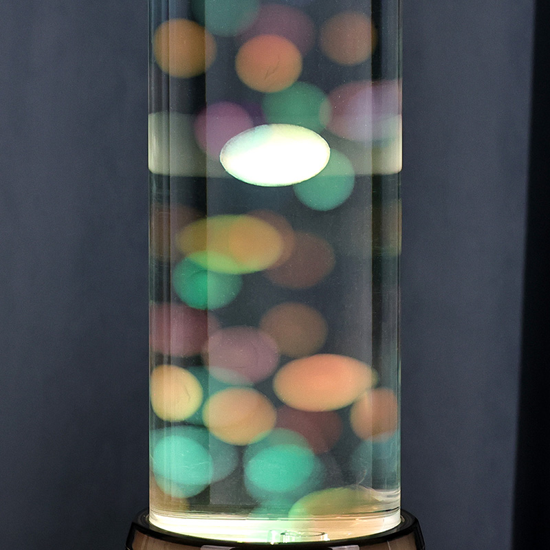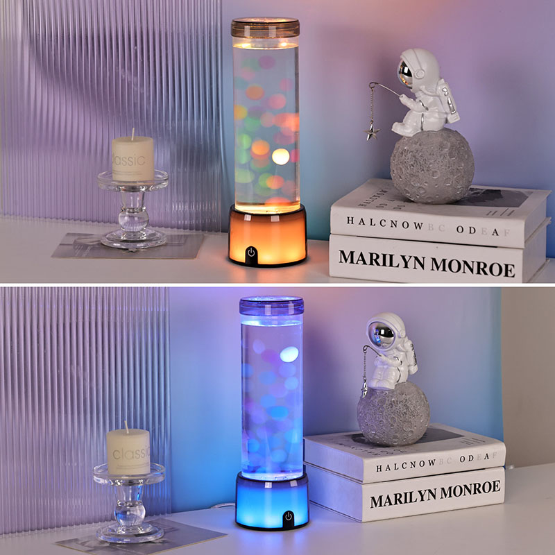 बत्तीको अग्लो, सुरुचिपूर्ण सिलिन्डर आकारले यसलाई आधुनिक, मिनिमलिस्ट लुक दिन्छ जसले विभिन्न भित्री शैलीहरूलाई पूरक बनाउँछ। यसको पारदर्शी शरीरले फ्लोटिंग जेलीफिस र चम्किरहेको प्रकाश प्रतिबिम्ब सहित आन्तरिक तत्वहरूको पूर्ण दृश्यतालाई अनुमति दिन्छ। भित्रको तरल पदार्थलाई पानीको प्रवाहको अनुकरण गर्न विशेष रूपमा तयार गरिएको छ, फ्लोटिंग गतिको यथार्थवाद बढाउँदै। LED ले रङहरू परिवर्तन गर्दा, जेलीफिसले जीवनसँग पल्स गरेको देखिन्छ, दृश्यमा गहिराइ र आन्दोलन थप्छ।