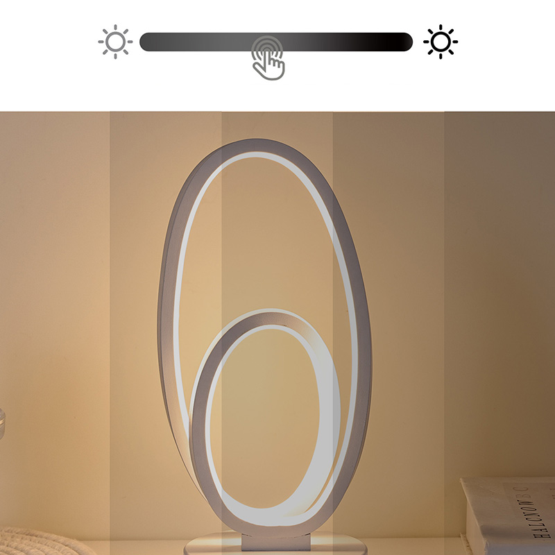 ४४*३३*H२३.५ सेमीडबल सर्कुलर रिङ शेड आरजीबी डेस्क ल्याम्पले मिनिमलिस्ट लाइनहरूद्वारा उल्लिखित सुरुचिपूर्ण रूपरेखासहित डबल-रिङ डिजाइनको सुविधा दिन्छ। धातु र उच्च गुणस्तरको प्लास्टिकको संयोजन, यसले असाधारण बनावट र नाजुक स्पर्शको गर्व गर्दछ। एक प्रकाश उपकरण हुनु परे, यो