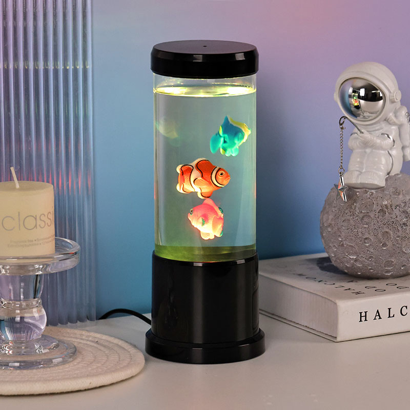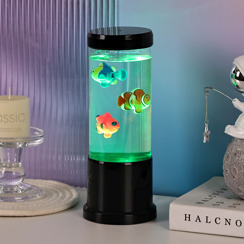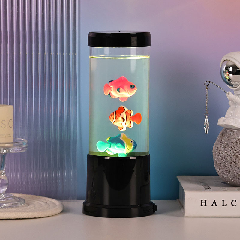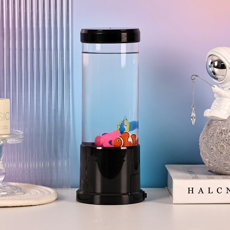 मंत्रमुग्ध LED फिश ल्याम्प प्रस्तुत गर्दै - आधुनिक डिजाइन र जलीय आकर्षणको एक आश्चर्यजनक मिश्रण जसले तपाईंको घरमा पानीमुनिको संसारको जादू ल्याउँछ। यसको पातलो कालो बाहिरी भाग, सुरुचिपूर्ण बेलनाकार आकार, र मनमोहक आन्तरिक गतिको साथ, यो सजावटी बत्ती प्रकाश मात्र होइन -
