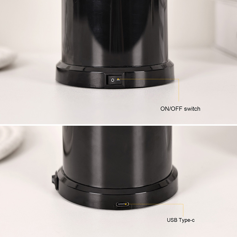 चम्किलो कालो आधार र ढक्कनले बनाइएको, बत्तीले न्यूनतम तर परिष्कृत सौन्दर्यता प्रदान गर्दछ जसले कुनै पनि आन्तरिक सजावटलाई पूरक बनाउँछ। बेडसाइड टेबल, डेस्क, शेल्फ, वा बैठक कोठा उच्चारणमा राखिएको भए पनि, यसको परिष्कृत सिल्हूटले भित्रको मनमोहक दृश्यमा ध्यान खिच्दा सुन्दरताको स्पर्श थप्छ। छेउमा रहेको एउटा साधारण बटन स्विचले सजिलो सञ्चालनको लागि अनुमति दिन्छ—बत्तीलाई सक्रिय वा बन्द गर्नको लागि थिच्नुहोस्, वा रंगीन मोडहरू सजिलैसँग घुमाउनुहोस्।