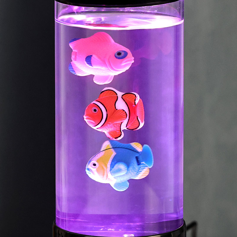 फिश ल्याम्प जेलीफिस ल्याम्पको वास्तविक हाइलाइट यसको गतिशील, रंग परिवर्तन गर्ने एलईडी प्रकाश प्रणाली हो। बटनको प्रत्येक थिच्दा, बत्तीले ज्वलन्त रंगहरू - गहिरो ब्लुज, उज्यालो बैजनी, नरम गुलाबी, न्यानो रातो, र चिसो सागहरू - कोठाको वरिपरि जादुई चमक casting को स्पेक्ट्रम मार्फत संक्रमण। यो सुविधाले विभिन्न मूडहरू सेट गर्नको लागि आदर्श बनाउँछ: सुत्ने समयको लागि शान्त नीलो टोन, रमाइलो वातावरणको लागि ऊर्जावान गुलाबी वा बैजनी, वा परिवेशको प्रकाशको लागि नरम सेतो।