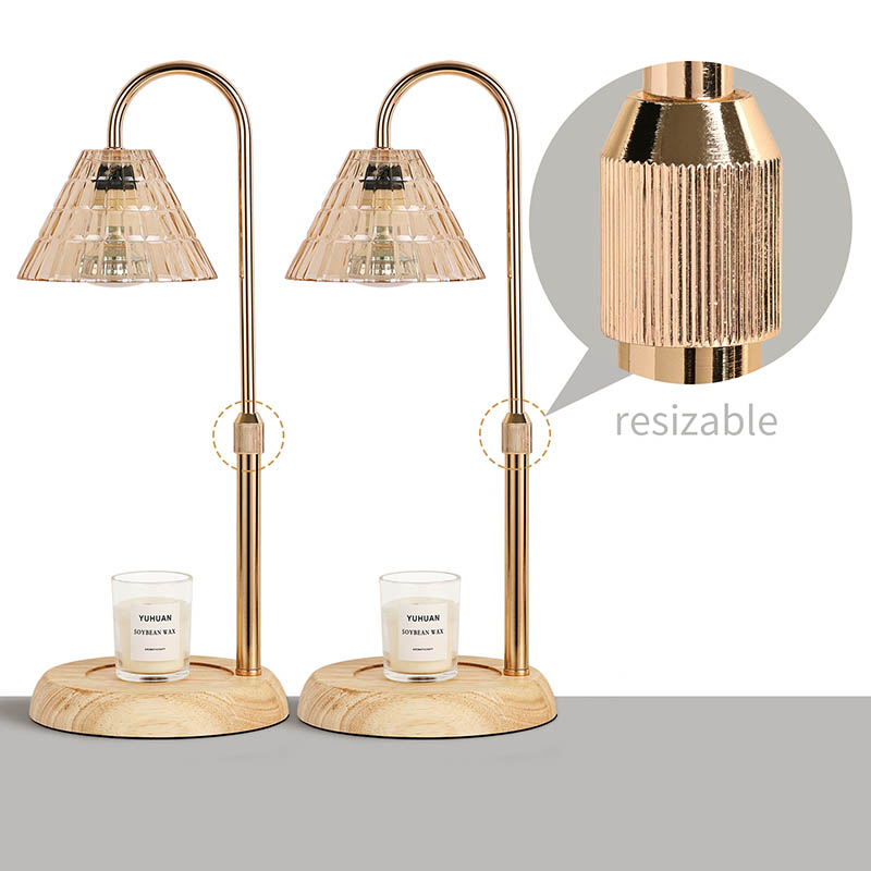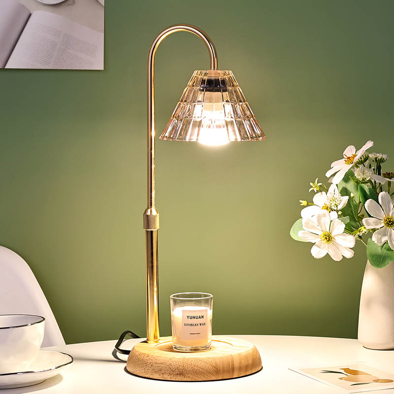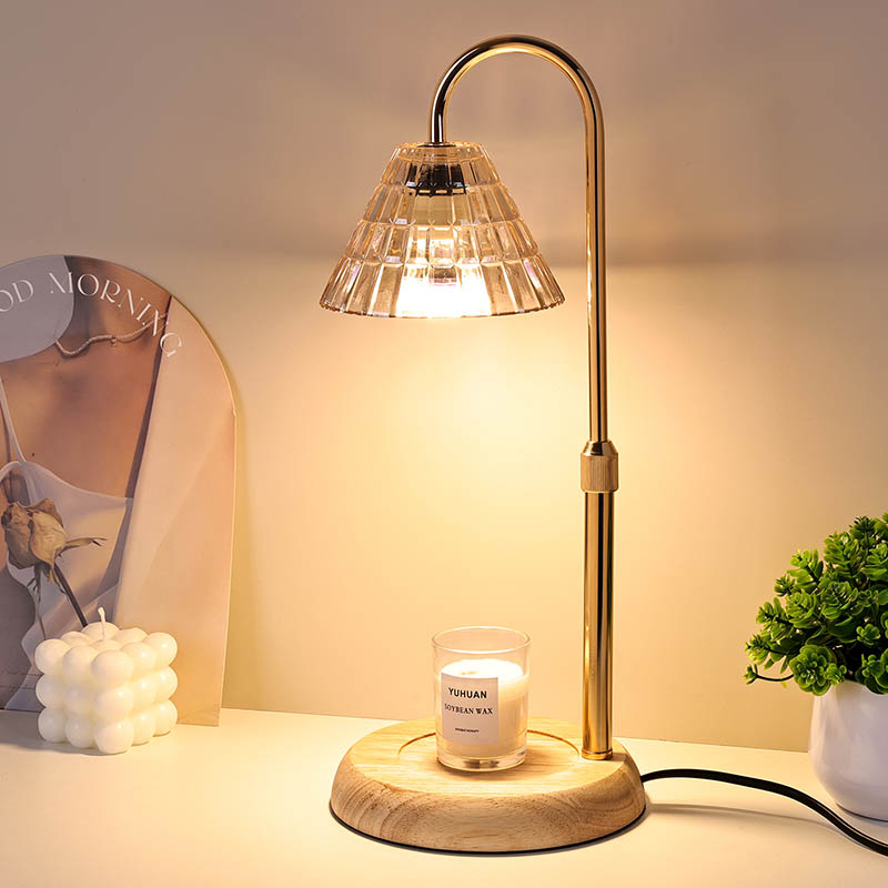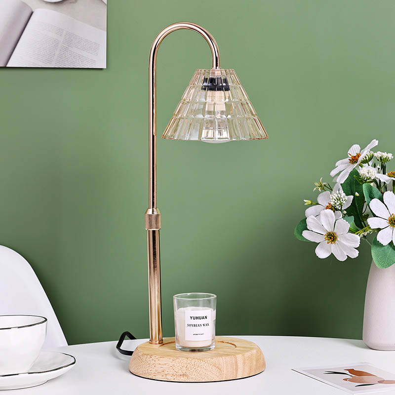 एडजस्ट हाइट भएको ग्लास शेड टेबल ल्याम्प एक परम्परागत डिजाइन शैली हो, जसमा काठको आधार र सुनौलो धातुको ल्याम्प पोष्ट भएको परम्परागत बल्ब समावेश हुन्छ।