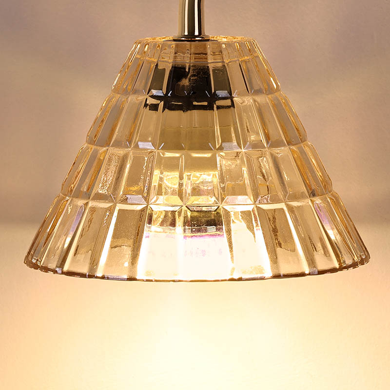 ल्याम्पशेड पारदर्शी गिलास (एक्रेलिक) बाट बनेको छ, र न्यानो रंगको प्रकाश पढ्नको लागि धेरै उपयुक्त छ। एडजस्ट हाइट भएको ग्लास शेड टेबल ल्याम्पको सबैभन्दा ठूलो बिक्री बिन्दु, यसको डिजाइनको अतिरिक्त, घुमाउने बटनको साथ उचाइ समायोज्य ल्याम्प पोष्ट हो, र प्रकाश दायरा पनि उचाइ अनुसार समायोजन गर्न सकिन्छ।