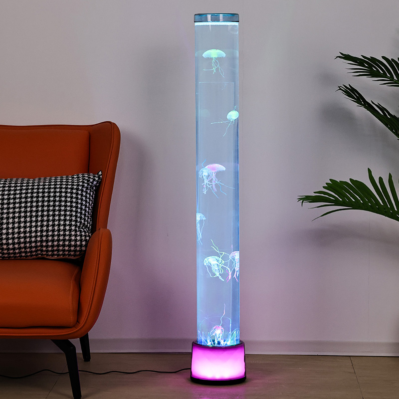 ३९.५*३९.५*११५ सेमीठुलो आरजीबी फ्लोर जेलीफिस ल्याम्प एउटा रचनात्मक घर सजावटको टुक्रा हो जसले आधुनिक प्रविधिलाई प्राकृतिक सौन्दर्यशास्त्रसँग मिसाउँछ, काल्पनिक प्रकाश प्रभावहरू र जीवन्त जेलीफिश डिजाइनहरू प्रस्तुत गर्दछ।