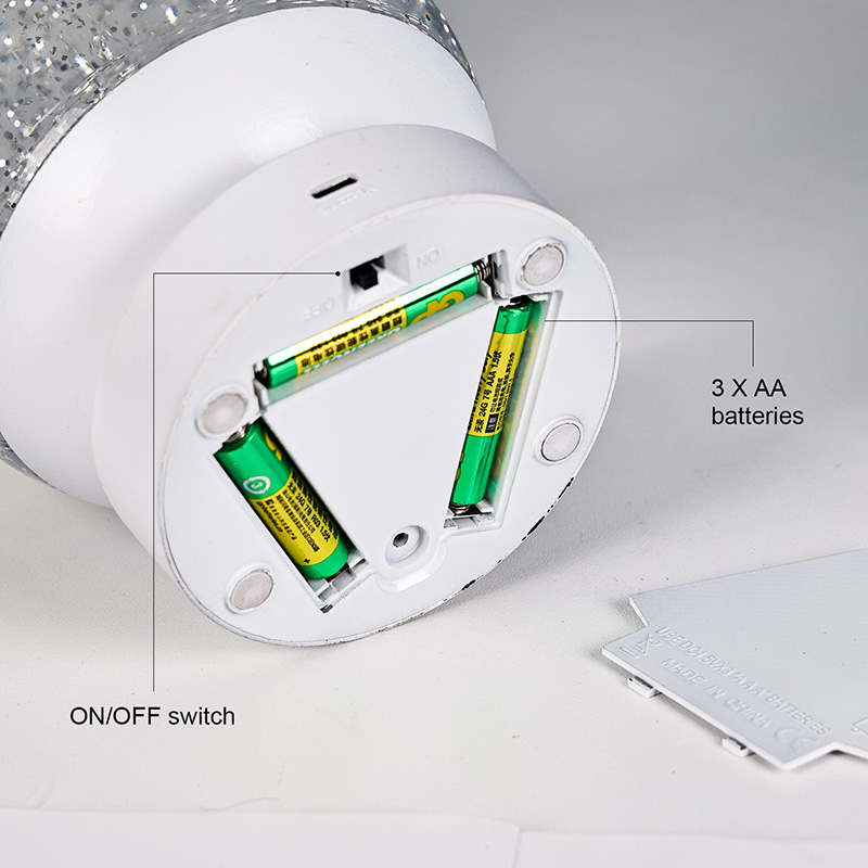 LED RGB ग्लिटर डेकोर ल्याम्प उत्कृष्ट प्रकाश प्रसारणको साथ पारदर्शी क्षेत्रको विशेषता सहित उच्च गुणस्तरको एक्रिलिक सामग्रीबाट बनेको छ। आधार पर्यावरण मैत्री एबीएस प्लास्टिकबाट बनाइएको हो, स्थिरता, स्थायित्व, र विषाक्त पदार्थहरू बिना सुरक्षा सुनिश्चित गर्दै। यसले तीन बिल्ट-इन AAA ब्याट्रीहरूमा काम गर्दछ (ब्याट्रीहरू छुट्टाछुट्टै बेचिन्छ), पावर आउटलेटको आवश्यकतालाई हटाउँदै र सुविधाजनक प्रयोग प्रदान गर्दछ। ओछ्यान, डेस्क, वा बच्चाको खेलौना कुनामा प्लेसमेन्टको लागि उत्तम। एक साधारण टच स्विचको साथ, प्रकाश सजिलै संग खोल्न वा बन्द गर्न सकिन्छ, यसलाई प्रयोगकर्ता-मैत्री बनाउँदै बच्चाहरूलाई स्वतन्त्र रूपमा सञ्चालन गर्न पनि।