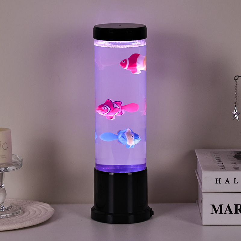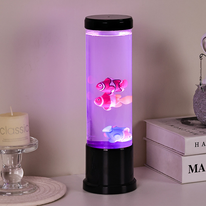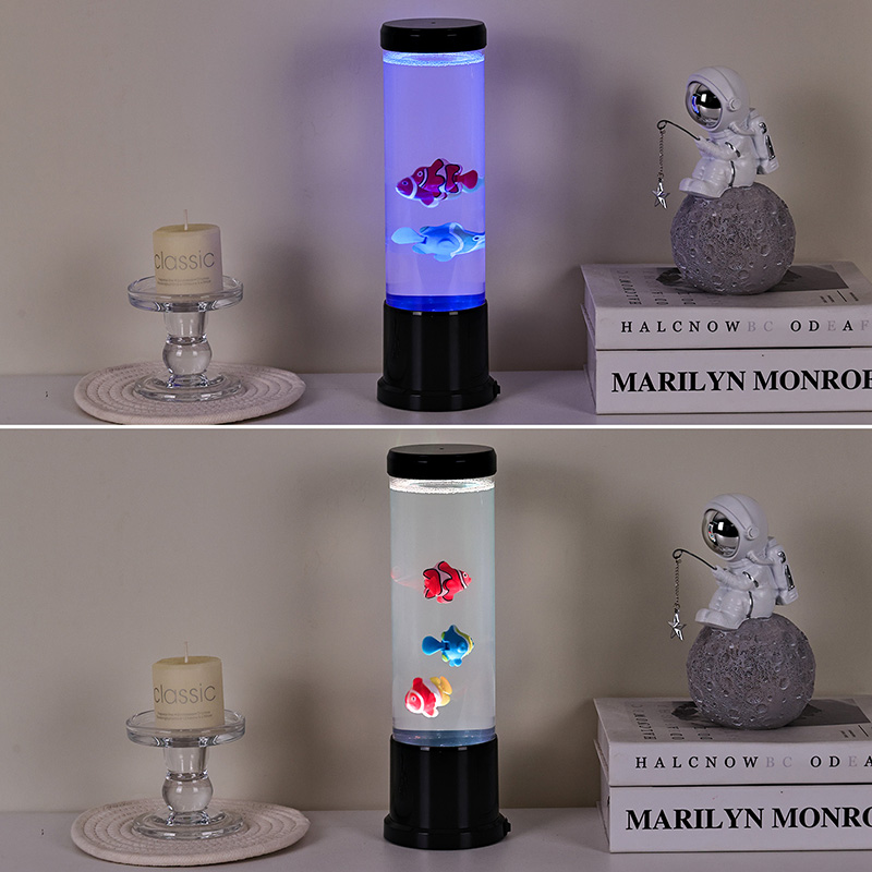 यस बत्तीको मुटुमा वास्तविक माछा ट्यांकको सावधानीपूर्वक सिमुलेशन गरिएको छ। स्पष्ट स्तम्भ भित्र, तपाईंले सुन्दर ढंगले विस्तृत, तैरिरहेको माछाका चित्रहरू फेला पार्नुहुनेछ-जस्तै जीवन्त क्लाउनफिस र अन्य उष्णकटिबंधीय प्रजातिहरू-जो बिस्तारै हिँड्छन् र पानी जस्तो तरलमा पौडी खेल्छन्। चम्किलो जेलीफिसको थपले जादुई पानीमुनि भ्रमलाई बढाउँछ, ईथरियल प्रकाशको साथ नरम पलिङ गर्दछ। आन्दोलन र रंगको संयोजनले एक गतिशील दृश्य सिर्जना गर्दछ जसले ध्यान आकर्षित गर्दछ र तपाईंको वातावरणमा शान्ति ल्याउँछ।