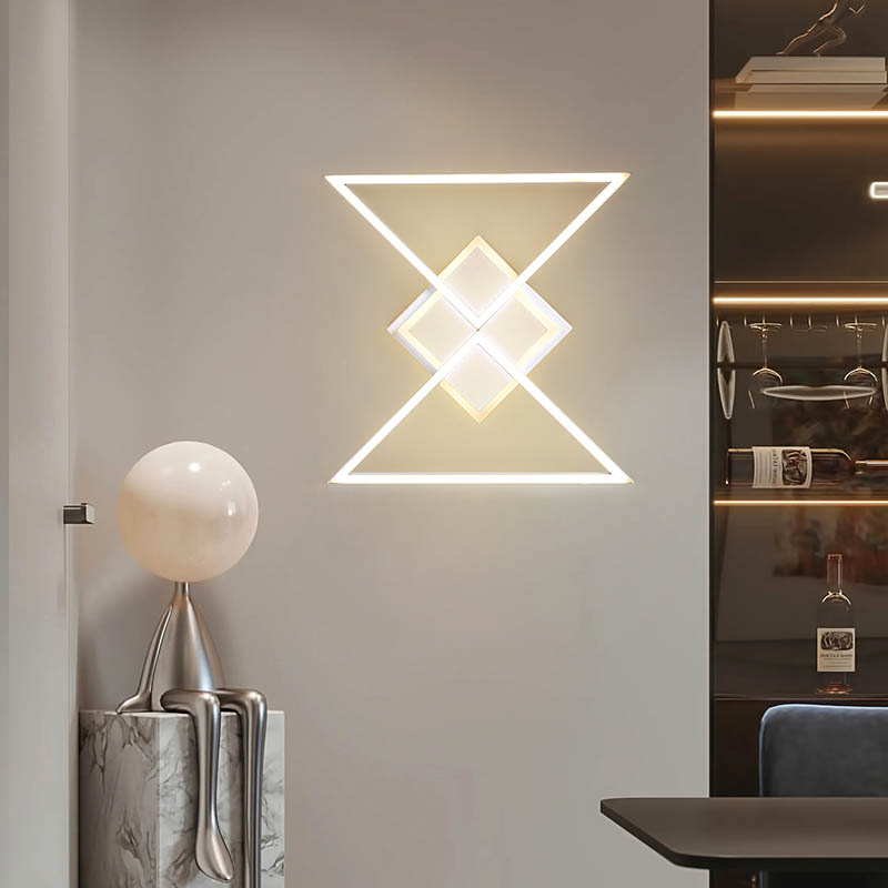 निर्दिष्टीकरण: सामग्री: उच्च गुणस्तरको धातु डिजाइन: आधुनिक, ज्यामितीय विकर्ण त्रिकोण प्रकाश: