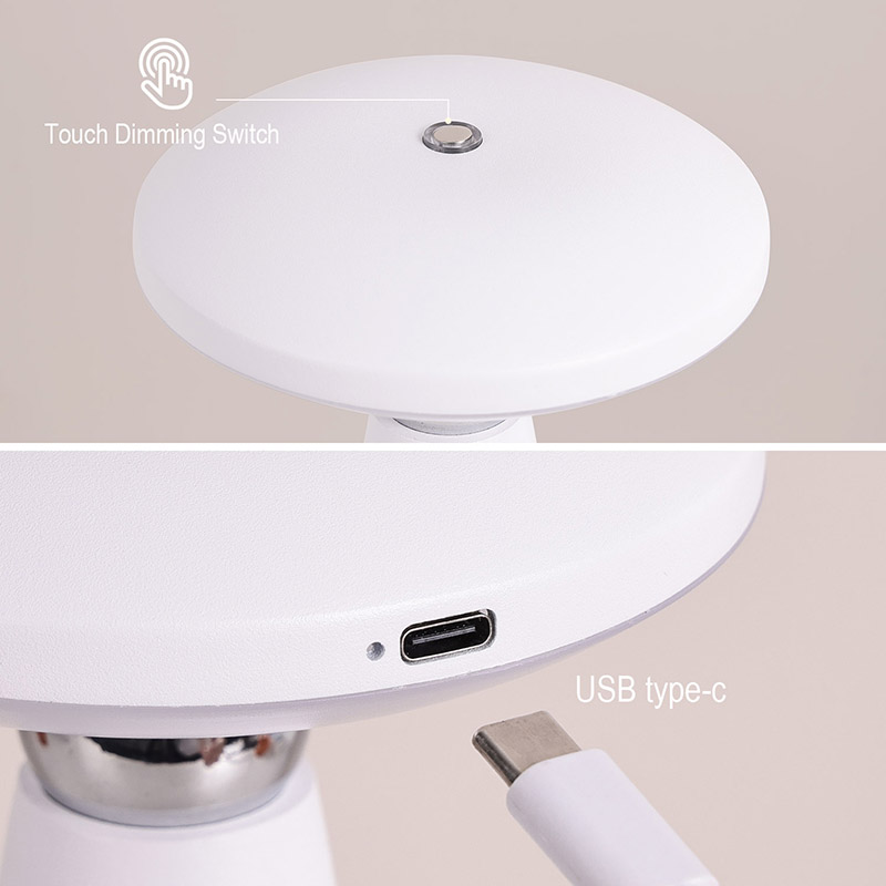 Dimming स्विच छुनुहोस्रिचार्जेबल ब्याट्री भएको मशरूम एलईडी डेस्क ल्याम्प यसको सरल र चिल्लो रेखाहरू र एर्गोनोमिक आकार, च्याउको आकार र सुई टेल डिजाइन, र धातुको तातो प्रकाश एलईडी डेस्क बत्ती, एक व्यावहारिक प्रकाश उपकरण मात्र होइन,