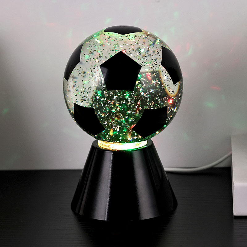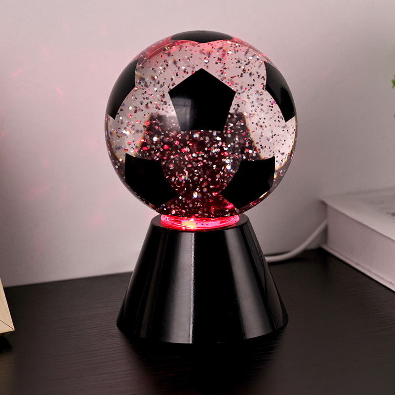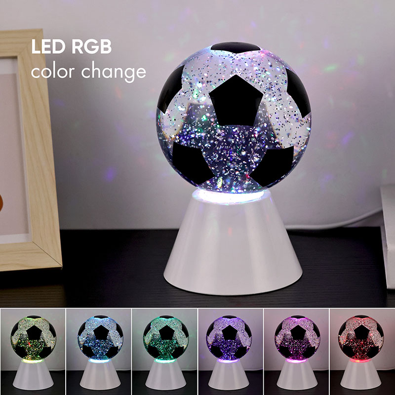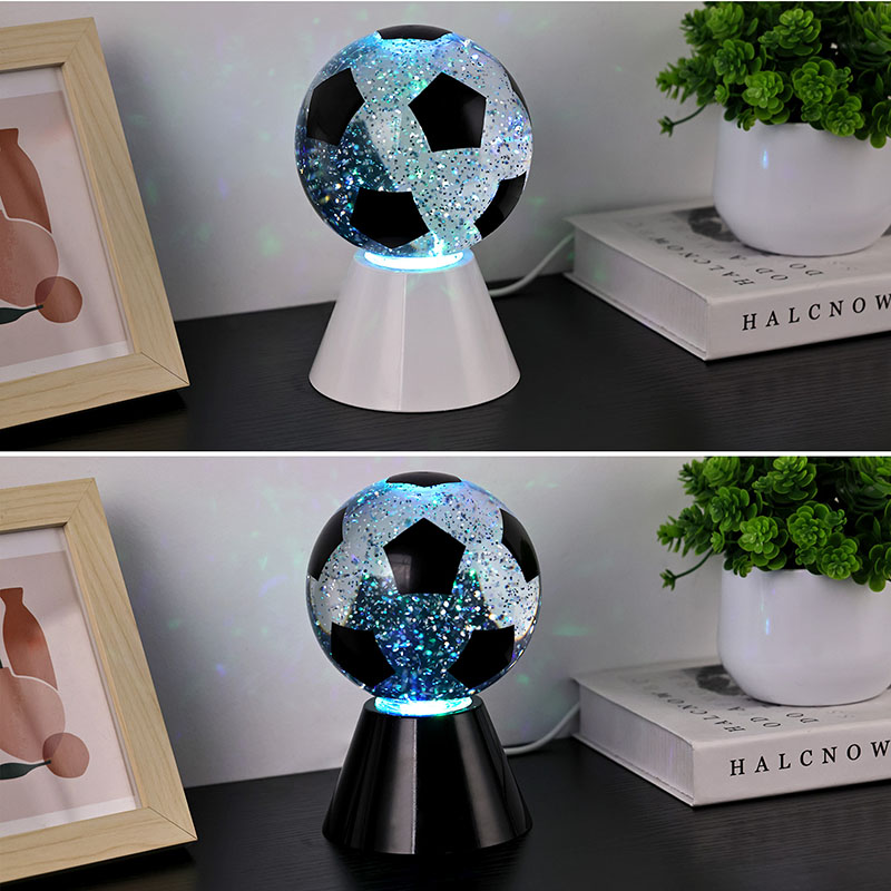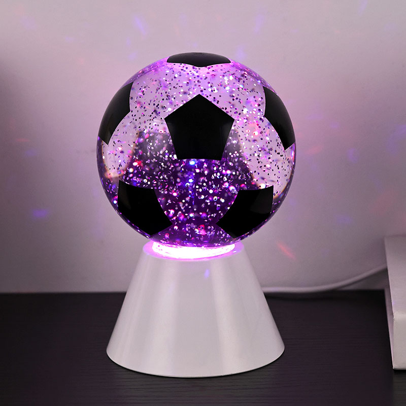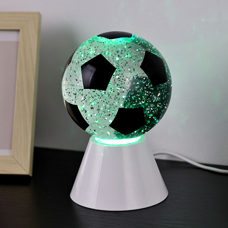सेतो + एलईडी रंग परिवर्तनगोलाकार उपहार प्रकाश माथिल्लो गिलास र एक प्लास्टिक आधार मिलेर बनेको छ। गिलास सतह फुटबल ढाँचा संग छापिएको छ, जुन विभिन्न रंगहरूमा छाप्न सकिन्छ। नाइट लाइट विथ फुटबल शेडको मुख्य विशेषता भनेको गोला भित्र तरल पदार्थ हुन्छ, जसमा सेक्विन हुन्छ। स्विच अन गरेपछि, बिल्ट-इन सानो मोटरले काम गर्न थाल्छ, र गिलास भित्रको तरल अनियमित रूपमा सर्छ। यससँगै नाइट लाइट विथ फुटबल शेडको तल्लो बत्ती परिवर्तन हुन थाल्छ, जुन धेरै सुन्दर छ। नाइट लाइट विथ फुटबल शेड मुख्यतया कोठा, बैठक कोठा, होटल कोठा र अन्य ठाउँहरूमा भित्री सजावटका लागि प्रयोग गरिन्छ, यो उत्पादन USB चार्जिङको साथ पनि आउँछ र 3AAA ब्याट्रीहरू प्रयोग गर्न सकिन्छ।