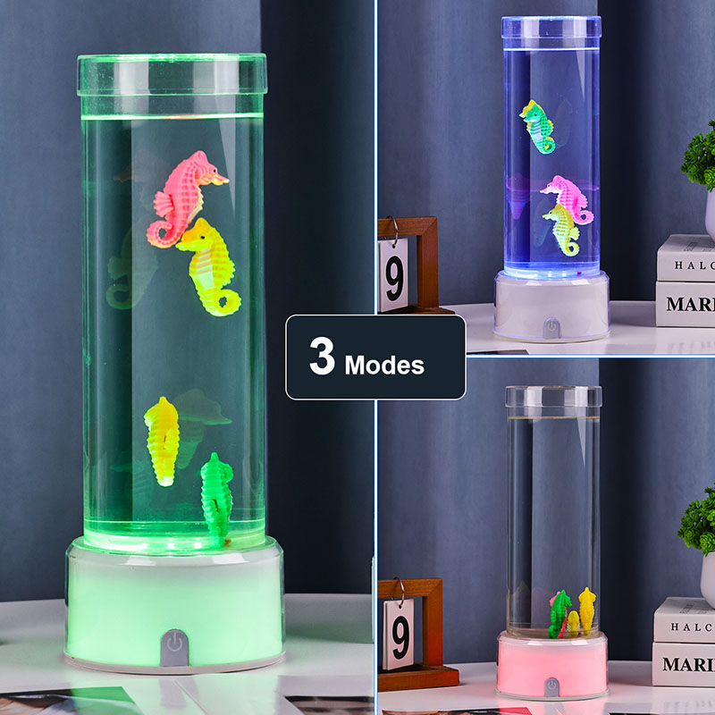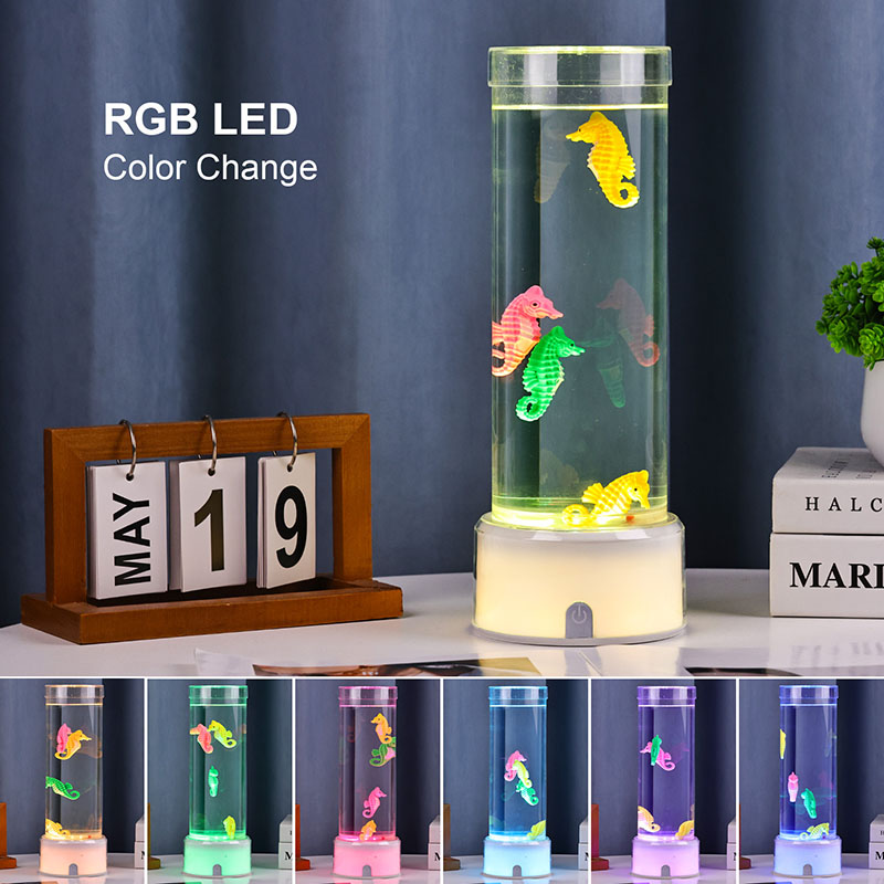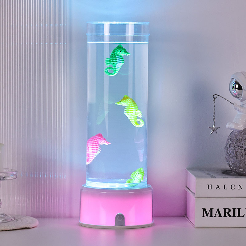आरजीबी कलर चेन्जिङ सीहोर्स डेकोरेटिभ ल्याम्प प्रस्तुत गर्दै समुद्री आकर्षण र आधुनिक प्रकाश प्रविधिको मनमोहक मिश्रण जुनसुकै ठाउँमा शान्ति र सौन्दर्य ल्याउन डिजाइन गरिएको यो सुरुचिपूर्ण बत्तीले सफा बेलनाकार तरल चेम्बरमा बिस्तारै पौडी खेल्ने समुद्री घोडाका आकृतिहरू देखाउँछ।