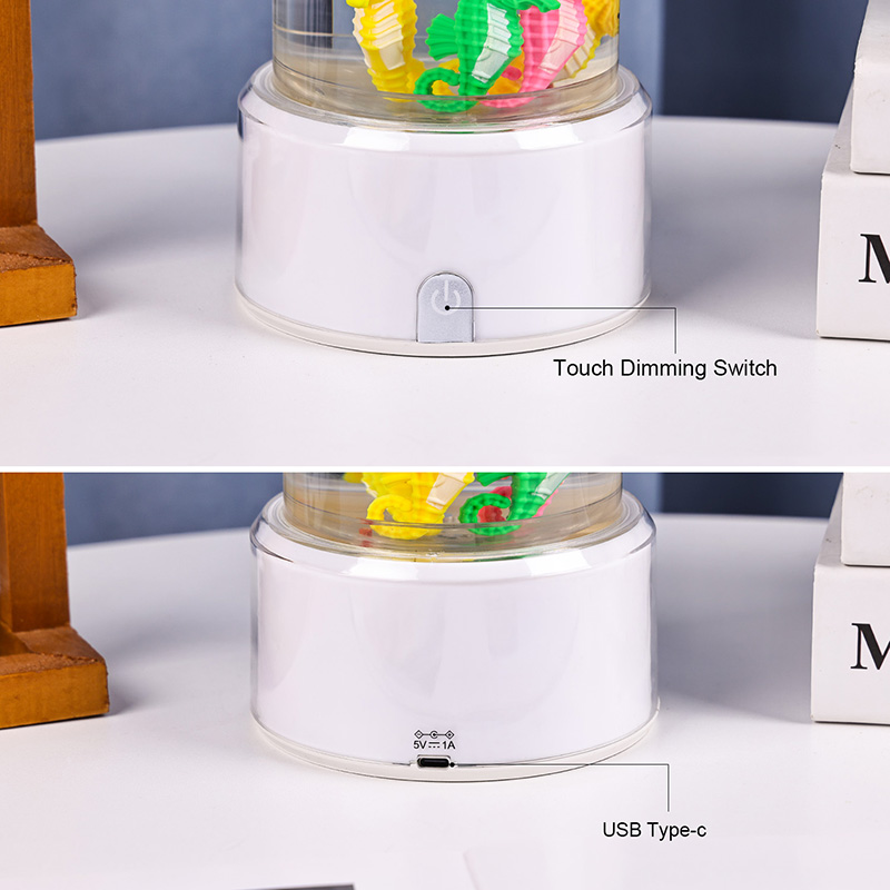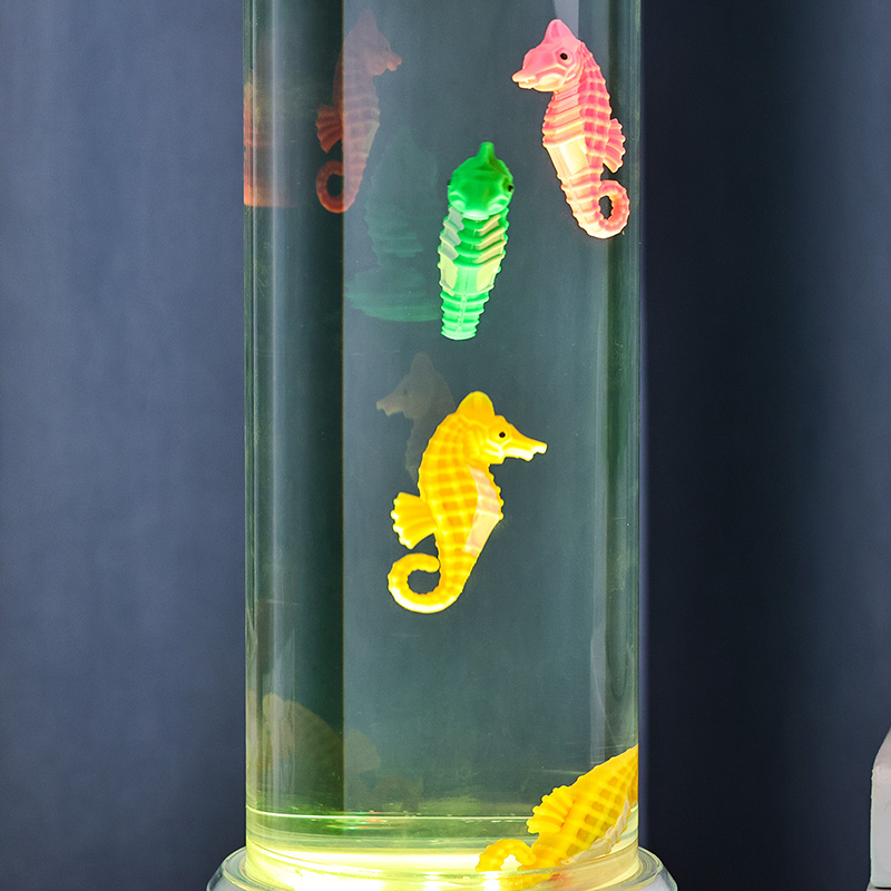 मंत्रमुग्ध पानीमुनि दृश्य जसले समुद्रको शान्तता जगाउँछ। सम्पूर्ण इकाई उच्च गुणस्तरको टिकाऊ प्लास्टिकबाट बनेको हो जसले सुरक्षा स्थिरता र दिगो कार्यसम्पादन सुनिश्चित गर्दछ। बत्ती लगभग 12 इन्च अग्लो छ र गैर-विषाक्त तरल पदार्थले भरिएको पातलो पारदर्शी ट्युब र रंगीन समुद्री घोडा गहनाहरू सावधानीपूर्वक हेरचाह गर्ने समुद्री घोडाहरू छन्। रङहरू र यथार्थवादी बनावटहरू तिनीहरू शान्त आन्तरिक परिसंचरण प्रणालीद्वारा सञ्चालित तरल स्तम्भ भित्र सुन्दर ढंगले तैर्छन् जसले वास्तविक समुद्री जीवनसँग मिल्दोजुल्दो प्राकृतिक हिलाउने गति सिर्जना गर्दछ।
