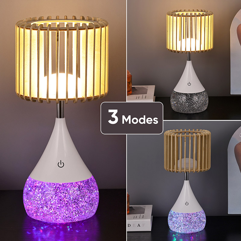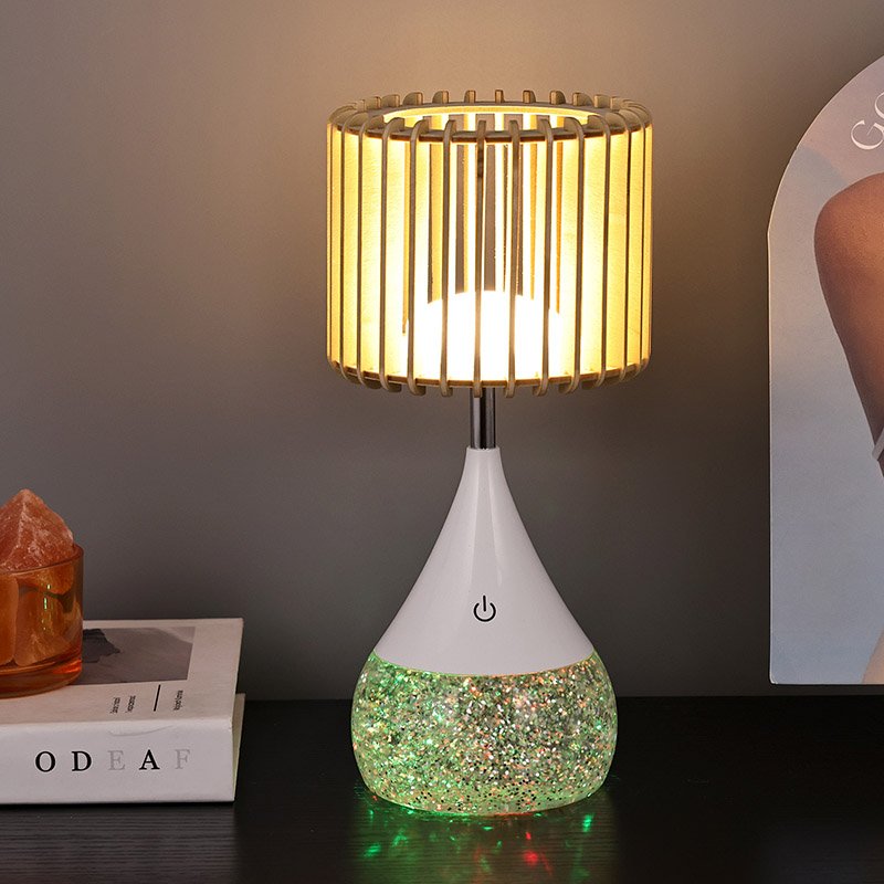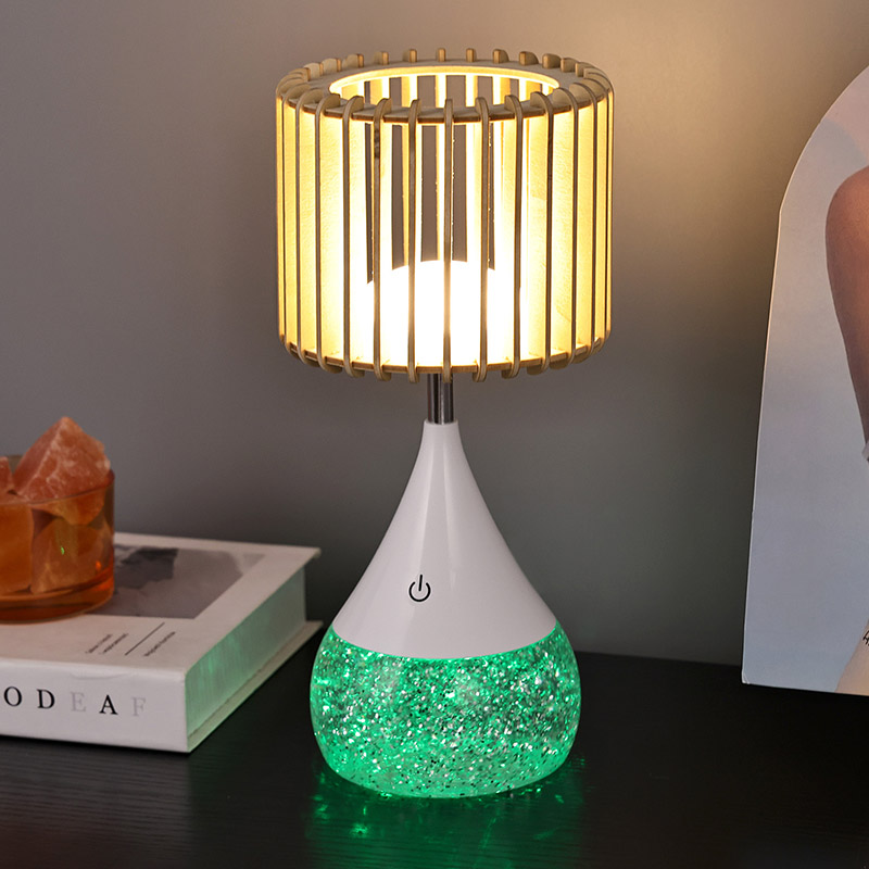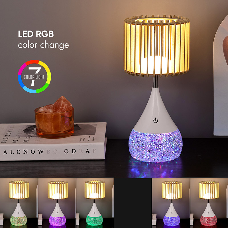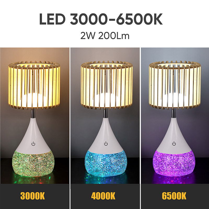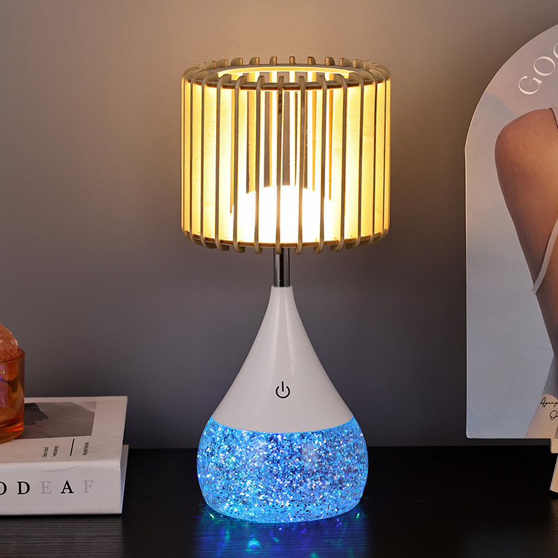 डिजाइन: ** अद्वितीय काठको स्लेट ल्याम्पशेड, RGB रंग परिवर्तन गर्ने आधार